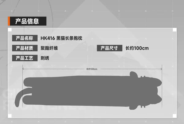 From the popular smartphone game Girls' Frontline, comes Black Cat-themed HK416 as a very long cat! Perhaps inspired by a certain joke on the net, this longcat plush presents all sorts of possibilities...like using it as a throw pillow or hugging plush! Be sure to bring Longcat 416 to your collection!